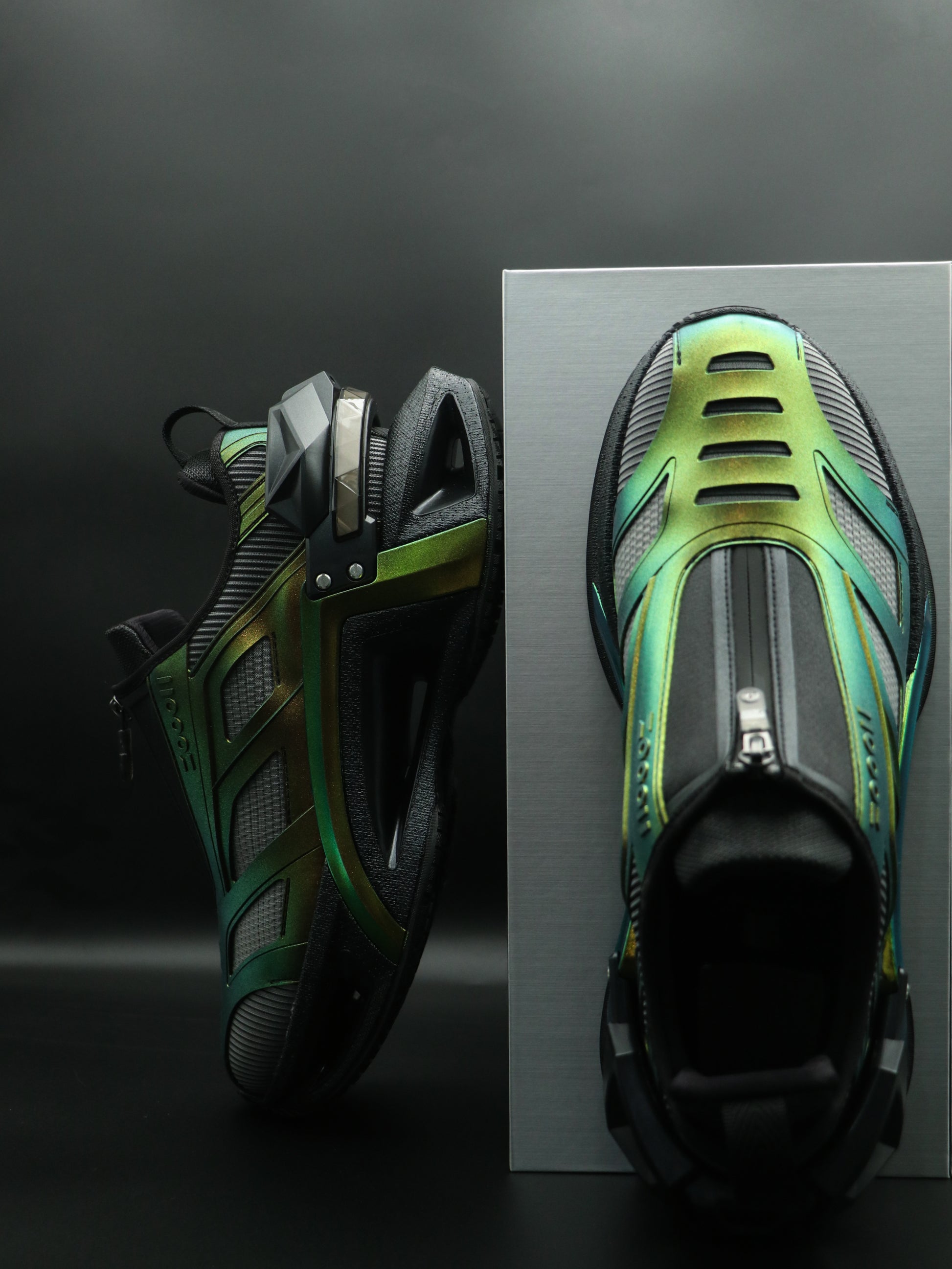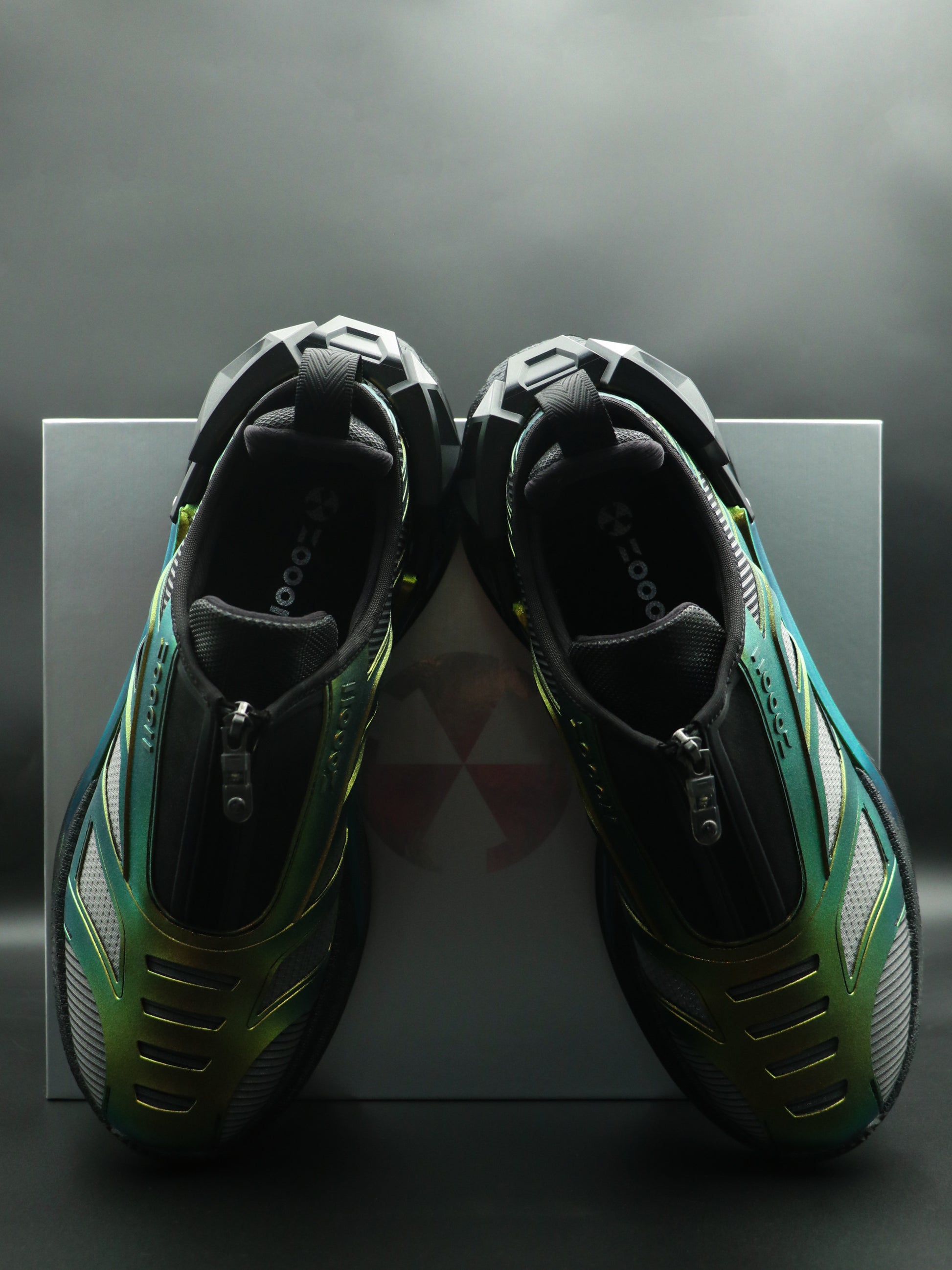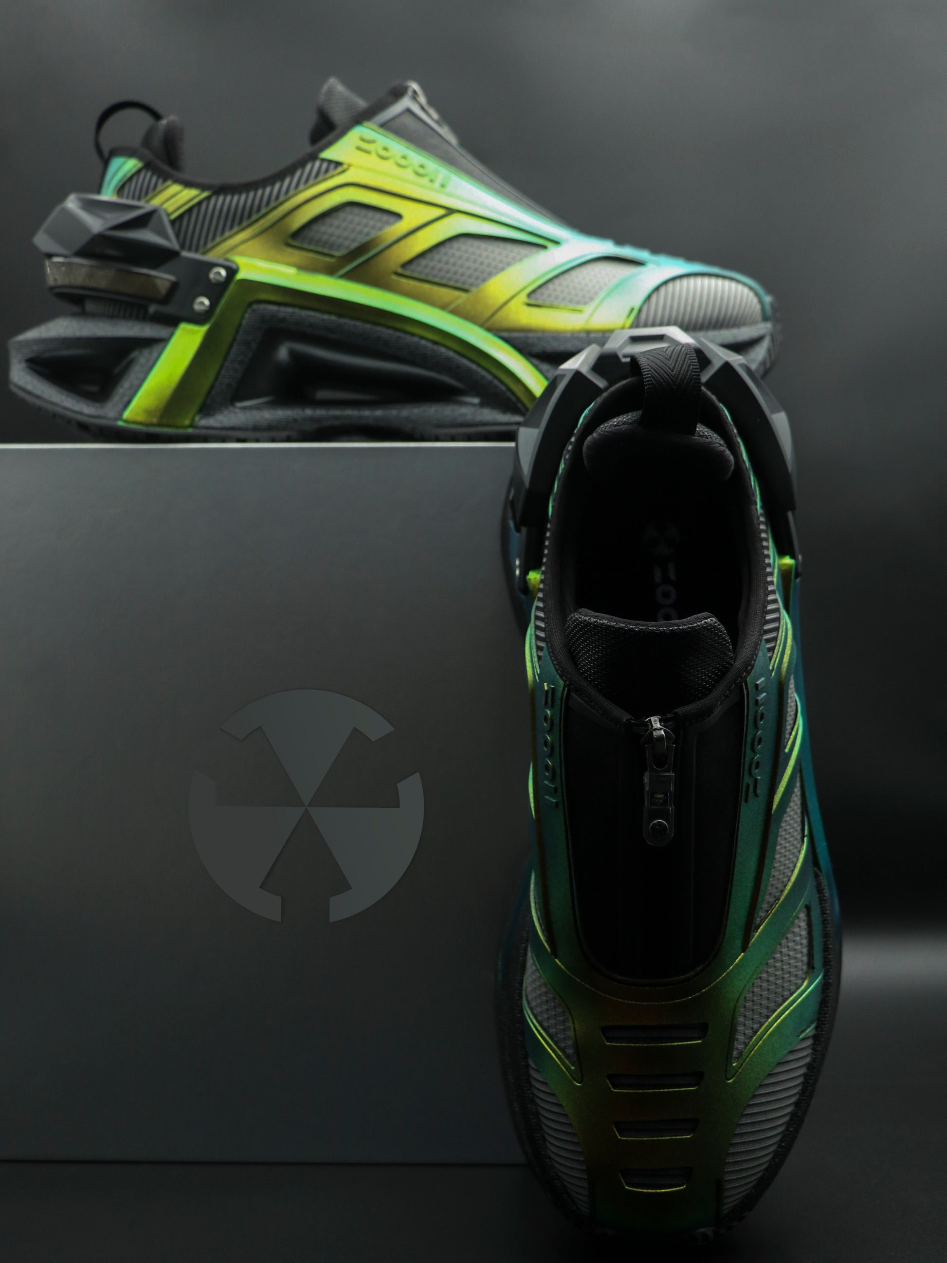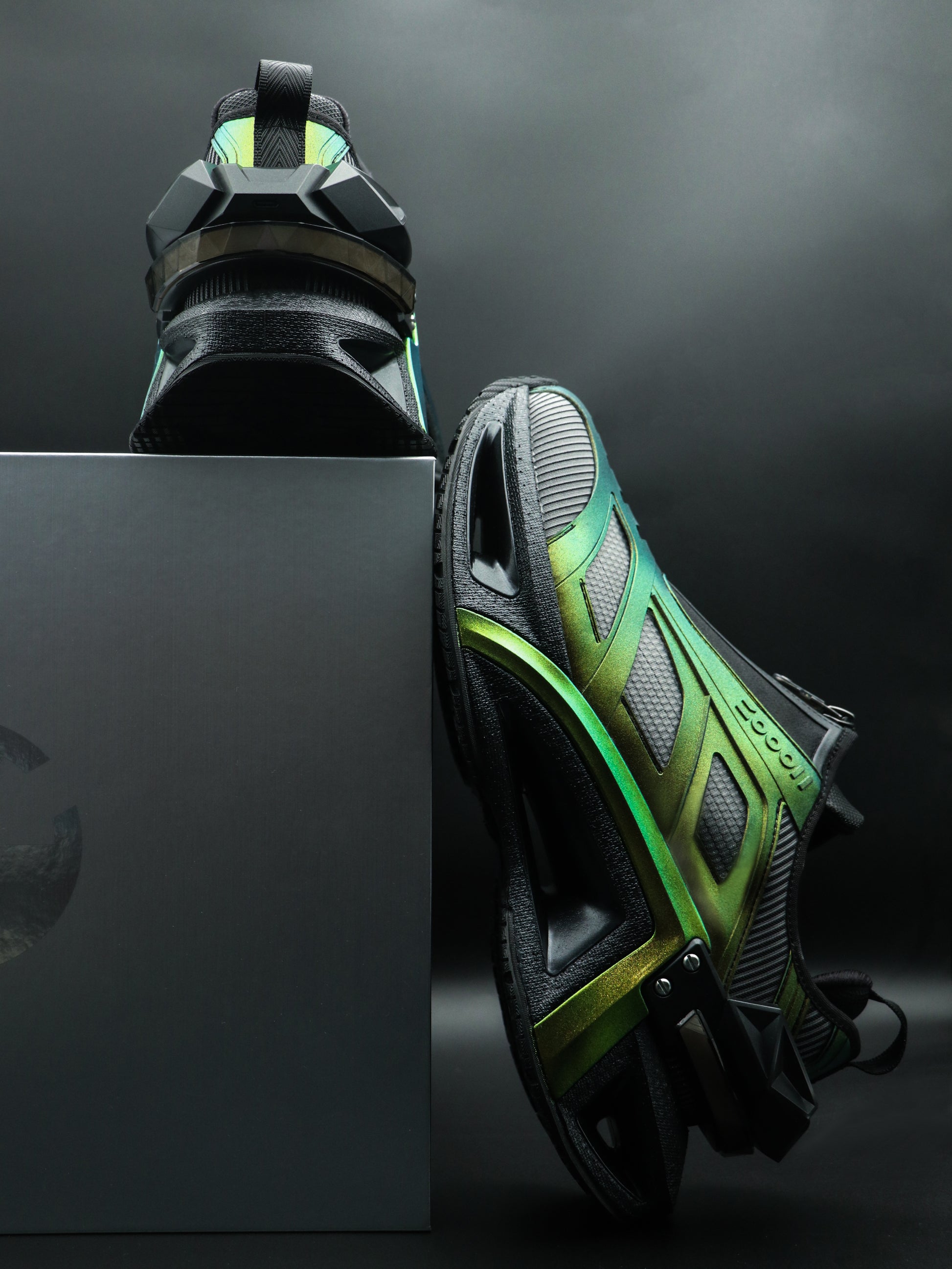 Crafted with ultrasonic welding. Dual batteries deliver extended endurance. Features a cloud foam midsole + triple-void hollow structure for cushioning and weight reduction, paired with a breathable engineered mesh + KPU upper.